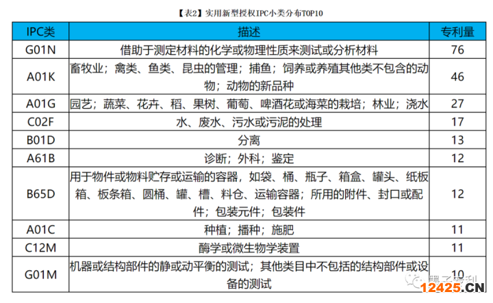 2022年9月科研院所發(fā)明授權(quán)專利IPC大類分布,如【圖3】所示,主要集中在G(物理)、C(化學(xué);冶金) 等;實用新型IPC大類分布,如【圖4】所示,主要集中在G(物理)、A(農(nóng)林日用)、B(作業(yè);運輸);發(fā)明、實用新型授權(quán)專利IPC小類如【表1】、【表2】所示。