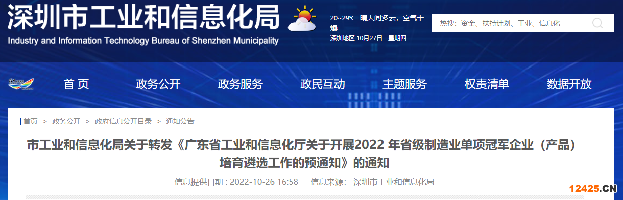 《廣東省工業(yè)和信息化廳關(guān)于開展2022 年省級(jí)制造業(yè)單項(xiàng)冠軍企業(yè)(產(chǎn)品)培育遴選工作的預(yù)通知》的通知