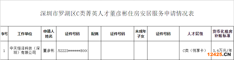 羅湖區(qū)住房和建設(shè)局關(guān)于向羅湖區(qū)C類菁英人才董彥彬提供住房安居服務(wù)的公示通知