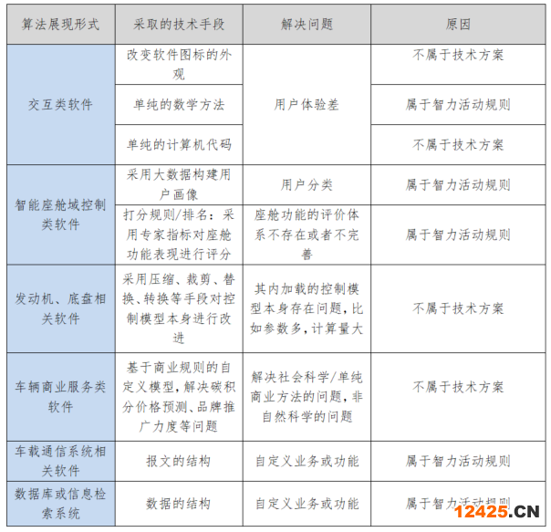 下面,在汽車軟件領(lǐng)域,匯總了不同軟件不滿足專利客體要求的幾種情況: