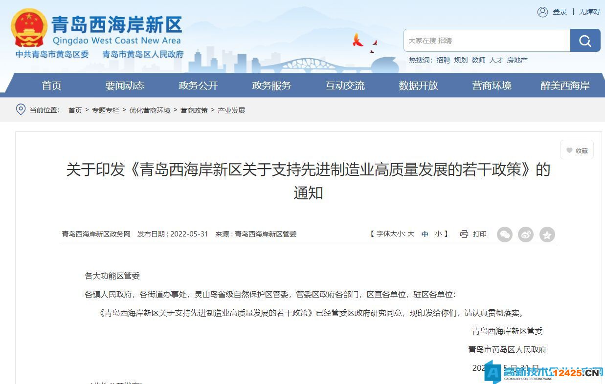 青島西海岸新區(qū)關于支持先進制造業(yè)高質量發(fā)展的若干政策