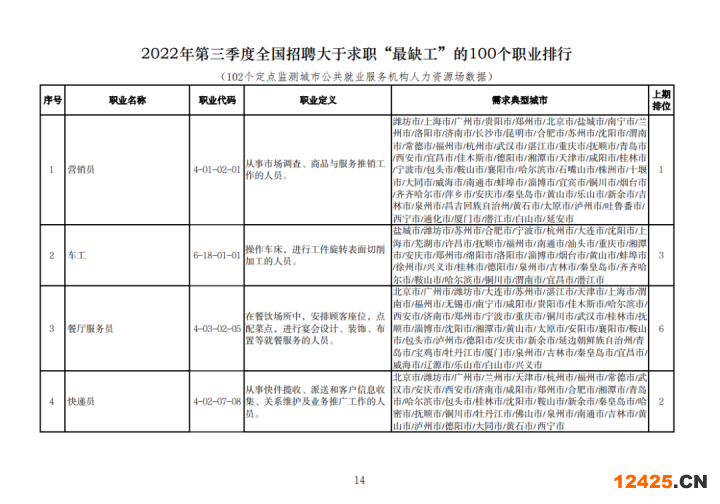 該排行是由中國(guó)就業(yè)培訓(xùn)技術(shù)指導(dǎo)中心組織102個(gè)定點(diǎn)監(jiān)測(cè)城市公共就業(yè)服務(wù)機(jī)構(gòu),采集人力資源市場(chǎng)“招聘需求人數(shù)”和“求職人數(shù)”缺口排名前20的職業(yè)崗位信息,綜合考量崗位缺口數(shù)量、填報(bào)城市數(shù)量等因素加工匯總整理形成。詳情可查詢?nèi)松绮抗倬W(wǎng)。