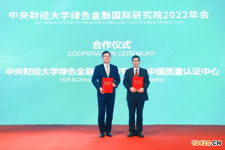 近日,中國質(zhì)量認(rèn)證中心與中央財經(jīng)大學(xué)達成合作意向,并于10月29日在京召開的中央財經(jīng)大學(xué)綠色金融國際研究院2022年會上舉辦合作儀式。在來自國家相關(guān)部委專家領(lǐng)導(dǎo)及在場嘉賓的共同見證下,中國質(zhì)量認(rèn)證中心與中央財經(jīng)大學(xué)履行合作文本交換。中國質(zhì)量認(rèn)證中心黨委書記、主任謝肇煦出席合作儀式并致辭。