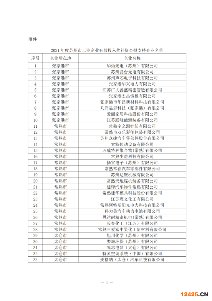 2021年度蘇州市工業(yè)企業(yè)有效投入獎(jiǎng)補(bǔ)資金擬支持企業(yè)名單