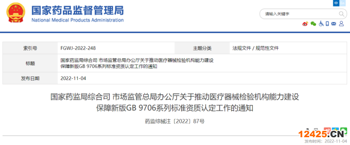 國家藥監(jiān)局綜合司 市場監(jiān)管總局辦公廳關(guān)于推動(dòng)醫(yī)療器械檢驗(yàn)機(jī)構(gòu)能力建設(shè)保障新版GB 9706系列標(biāo)準(zhǔn)資質(zhì)認(rèn)定工作的通知