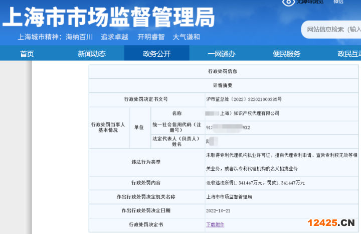 近日,上海市市場(chǎng)監(jiān)督管理局發(fā)布了兩則行政處罰信息。上海兩家知識(shí)產(chǎn)權(quán)代理公司在未取得專利代理機(jī)構(gòu)執(zhí)業(yè)許可證的情況下,擅自開展專利代理業(yè)務(wù),共計(jì)代理專利申請(qǐng)25件,分別被罰19811.32元、26828.94元。