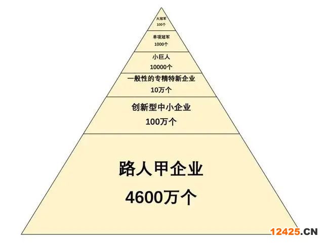 可以暢想一下,2025年前后,中國(guó)量大面廣、鋪天蓋地的中小企業(yè)將被重組成一個(gè)巨大的金字塔。從上到下,分別是:大冠軍(類似格力、三一重工這樣的龍頭企業(yè))、單項(xiàng)冠軍(有獨(dú)門(mén)絕技的、全球市場(chǎng)名列前三的)、小巨人、一般性的專精特新、創(chuàng)新型中小企業(yè)、普通的路人甲型企業(yè)。