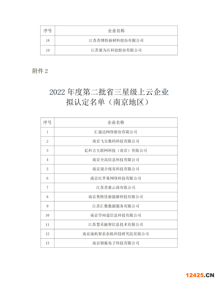 南京市2022年度第二批省四星級(jí)、三星級(jí)上云企業(yè)擬認(rèn)定名單