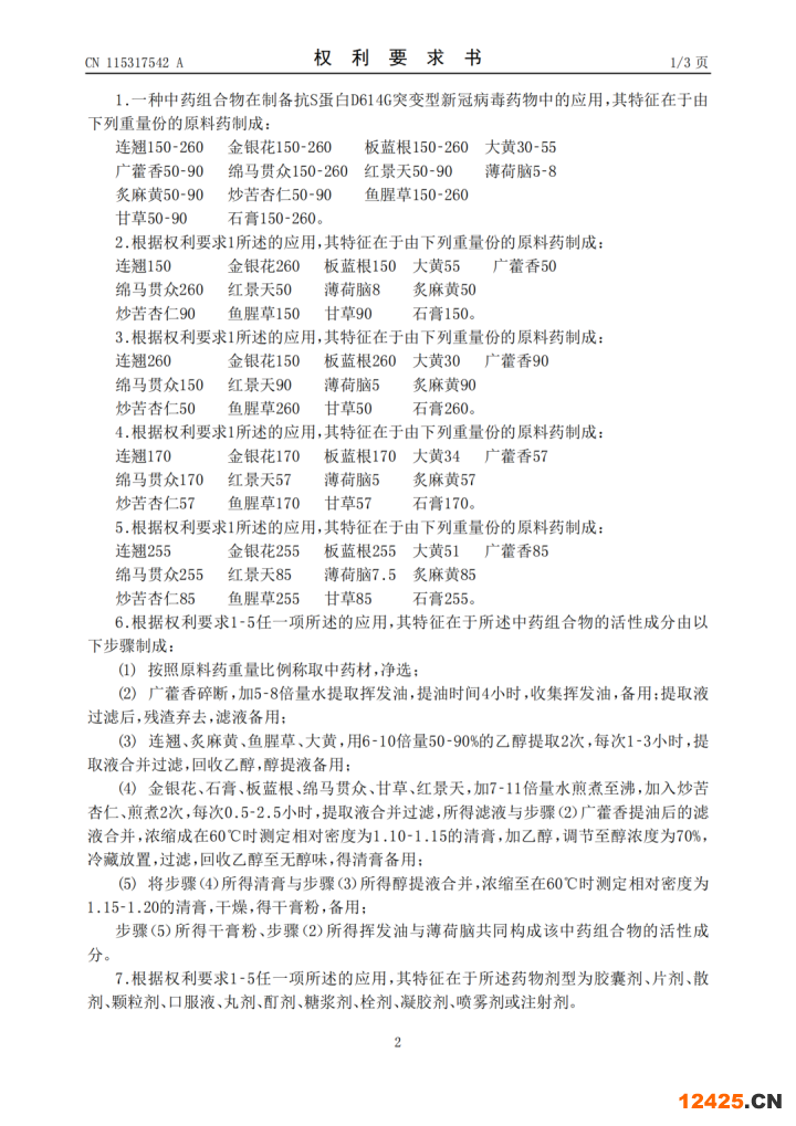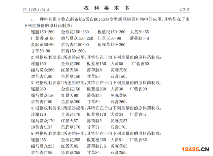 文件記載的內(nèi)容。上述專利未公開該中藥組合物在抗S蛋白D614G突變型新冠病毒中的應(yīng)用。