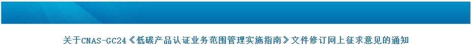 關(guān)于CNAS-GC24《低碳產(chǎn)品認(rèn)證業(yè)務(wù)范圍管理實(shí)施指南》文件修訂網(wǎng)上征求意見的通知