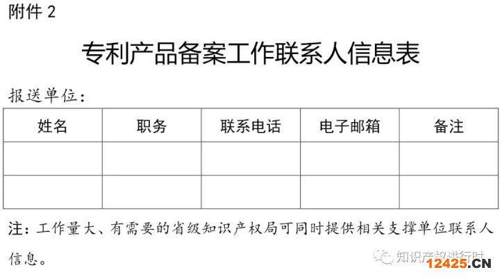 附件:2.專(zhuān)利產(chǎn)品備案工作聯(lián)系人信息表