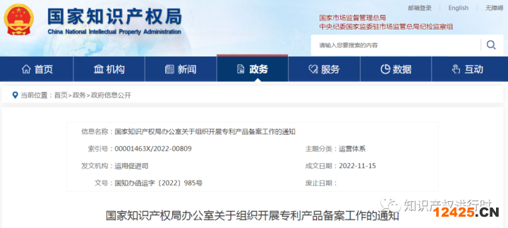 ?國(guó)家知識(shí)產(chǎn)權(quán)局辦公室關(guān)于組織開(kāi)展專(zhuān)利產(chǎn)品備案工作的通知