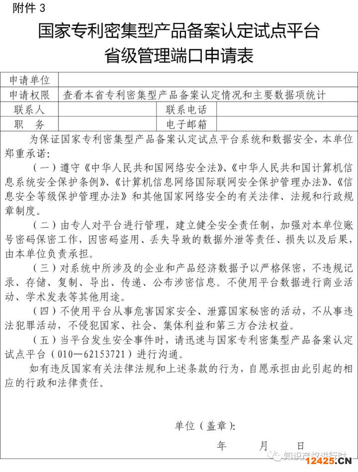 附件:3.國(guó)家專(zhuān)利密集型產(chǎn)品備案認(rèn)定試點(diǎn)平臺(tái)省級(jí)管理端口申請(qǐng)表