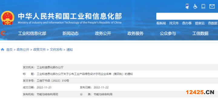 工業(yè)和信息化部辦公廳關(guān)于公布工業(yè)產(chǎn)品綠色設(shè)計(jì)示范企業(yè)名單(第四批)的通知