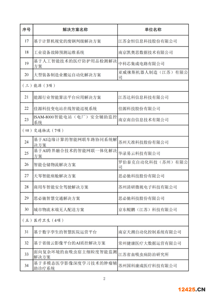 2. 2022年江蘇省人工智能應(yīng)用解決方案公示名單