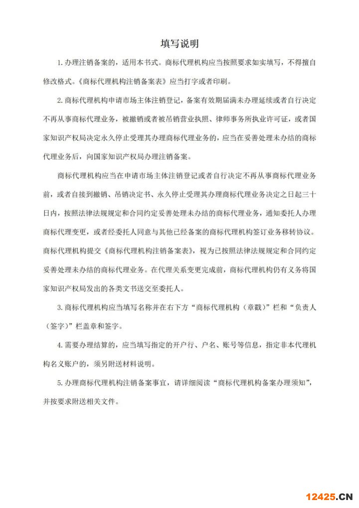 3.按要求填寫《商標代理機構(gòu)注銷備案表》(打字或印刷),在指定位置加蓋商標代理機構(gòu)章戳、負責人簽字。
