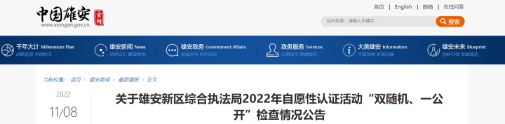 雄安新區(qū)2022年自愿性認(rèn)證活動(dòng)“雙隨機(jī)、一公開”檢查情況公告