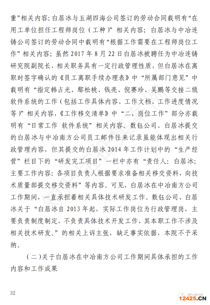 中冶南方連鑄技術工程有限責任公司與北京數(shù)鈺科技發(fā)展有限公司、白居冰專利申請權權屬糾紛案