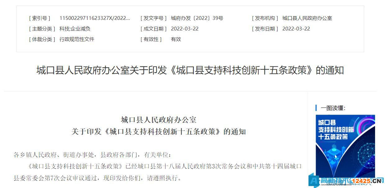 城口縣支持科技創(chuàng)新十五條政策
