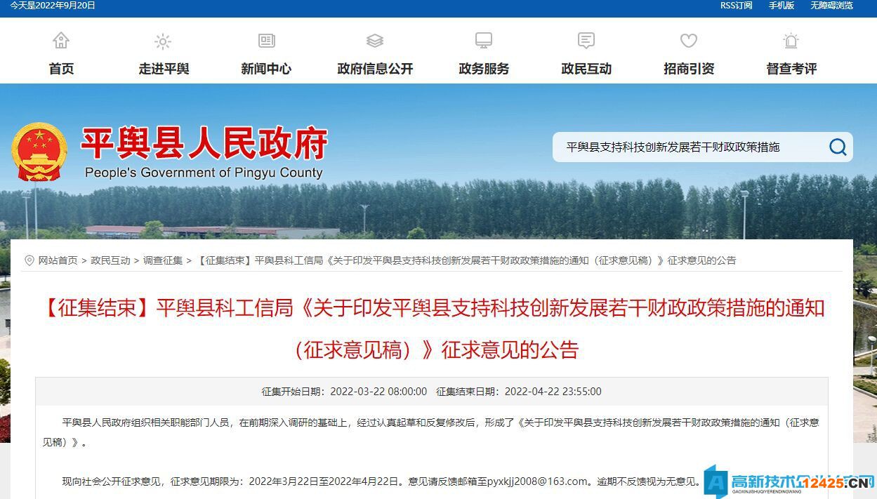 駐馬店市平輿縣高新技術(shù)企業(yè)獎(jiǎng)勵(lì)政策:平輿縣人民政府辦公室關(guān)于印發(fā)平輿縣支持科技創(chuàng)新發(fā)展若干財(cái)政政策措施的通知