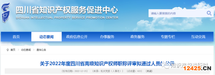 關(guān)于2022年度四川省高級知識產(chǎn)權(quán)師職稱評審擬通過人員的公示