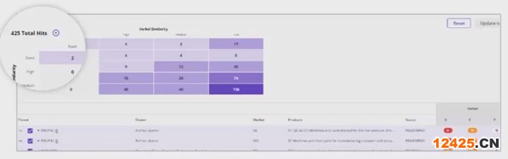 與此同時,AI也改變了傳統(tǒng)的商標近似性檢索工作流程。仍以上述某文字商標申請為例,CompuMark商標全景分析器可在海量數(shù)據(jù)庫中快速梳理出所有與其可能存在近似性的商標,并根據(jù)相似程度進行排序。由此,決策者可輕松了解候選商標周圍的整個環(huán)境,從而將原本單向的對比檢索轉(zhuǎn)變?yōu)橐环N全景式的風險評估。