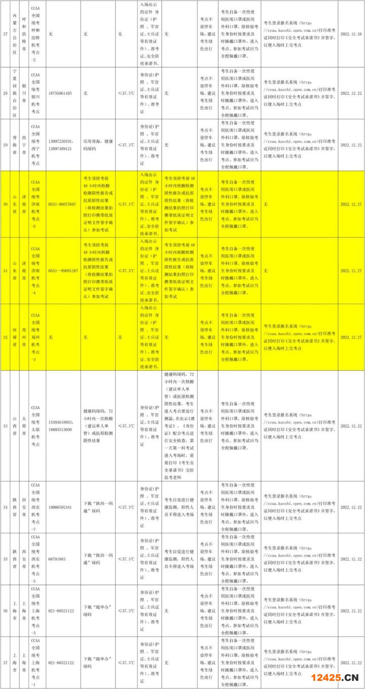 2022年12月認證人員注冊全國統(tǒng)一考試考點防疫要求一覽表【20221227】