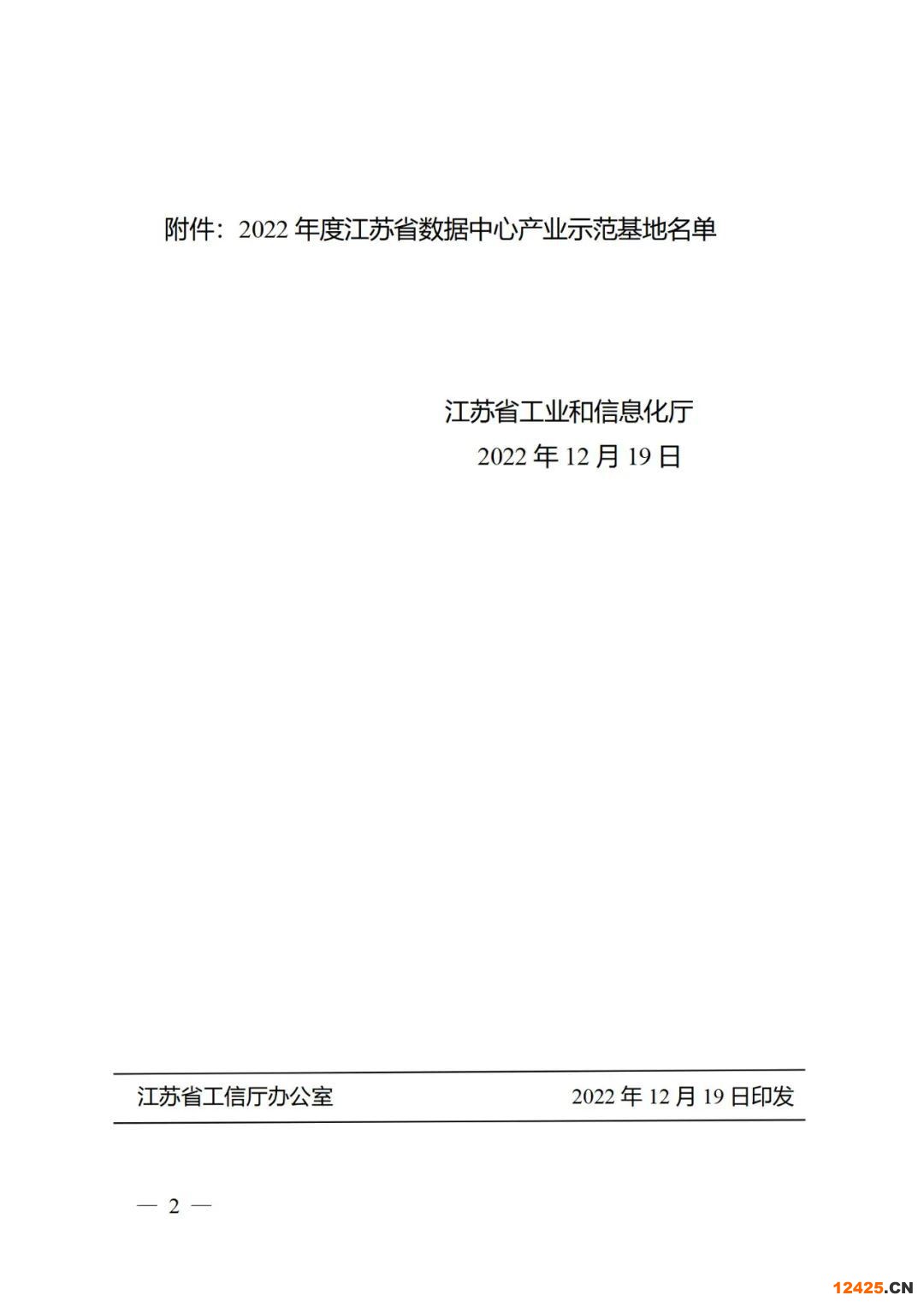 關(guān)于公布2022年度江蘇省數(shù)據(jù)中心產(chǎn)業(yè)示范基地名單的通知