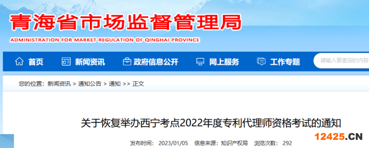 關(guān)于恢復(fù)舉辦西寧考點(diǎn)2022年度專(zhuān)利代理師資格考試的通知