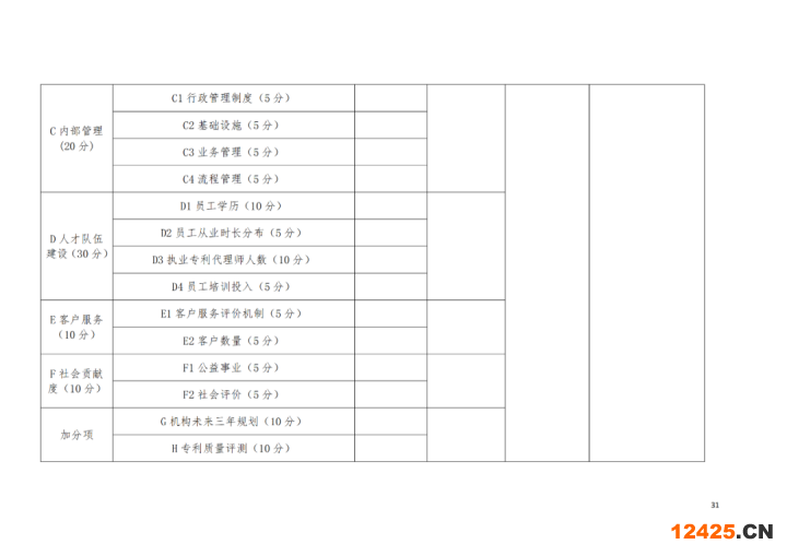 (1)其中我省專利代理機構(gòu)在省內(nèi)設(shè)立的分支機構(gòu)不參加等級評定,其相應(yīng)指標(biāo)計入總部參與申報評定;(2)我省專利代理機構(gòu)在外省設(shè)立的分支機構(gòu)的相應(yīng)指標(biāo)不計入總部申報評定;(3)省外專利代理機構(gòu)在我省設(shè)立的分支機構(gòu)應(yīng)以其分支機構(gòu)指標(biāo)申報評定;(4)設(shè)立滿一個會計年度以上的專利代理機構(gòu)應(yīng)當(dāng)申報評定。