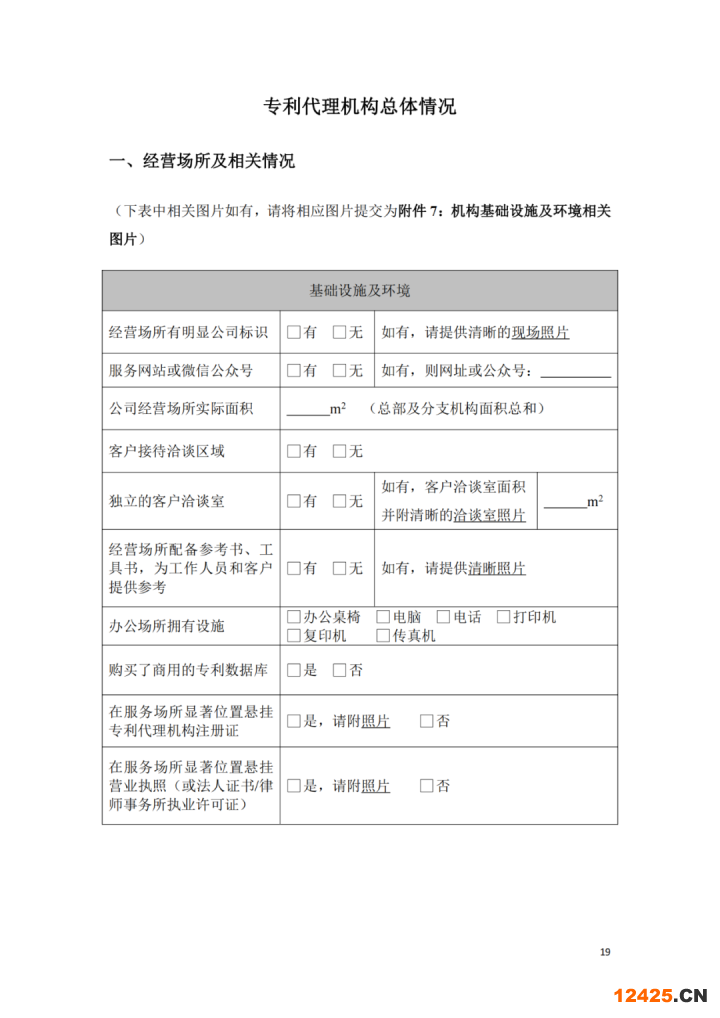 1.基本條件專利代理機構(gòu)的服務(wù)項目、運行管理、辦公場地和附屬設(shè)施設(shè)備應(yīng)符合國家對專利代理機構(gòu)相關(guān)法律、法規(guī)和標(biāo)準(zhǔn)的要求。專利代理機構(gòu)應(yīng)具備以下證明:(1)專利代理機構(gòu)注冊證或執(zhí)業(yè)許可證;(2)營業(yè)執(zhí)照或事業(yè)法人登記證書或律師事務(wù)所執(zhí)業(yè)許可證(事業(yè)單位性質(zhì)且非獨立法人的機構(gòu)除外)。