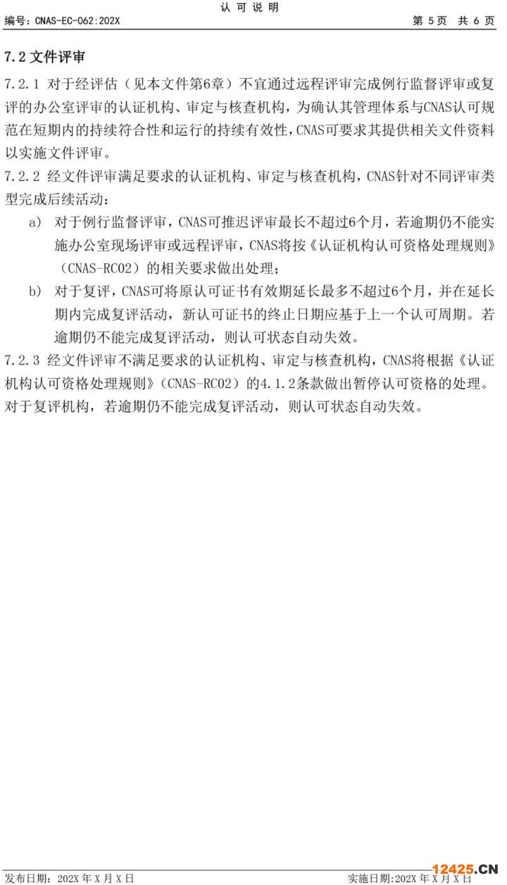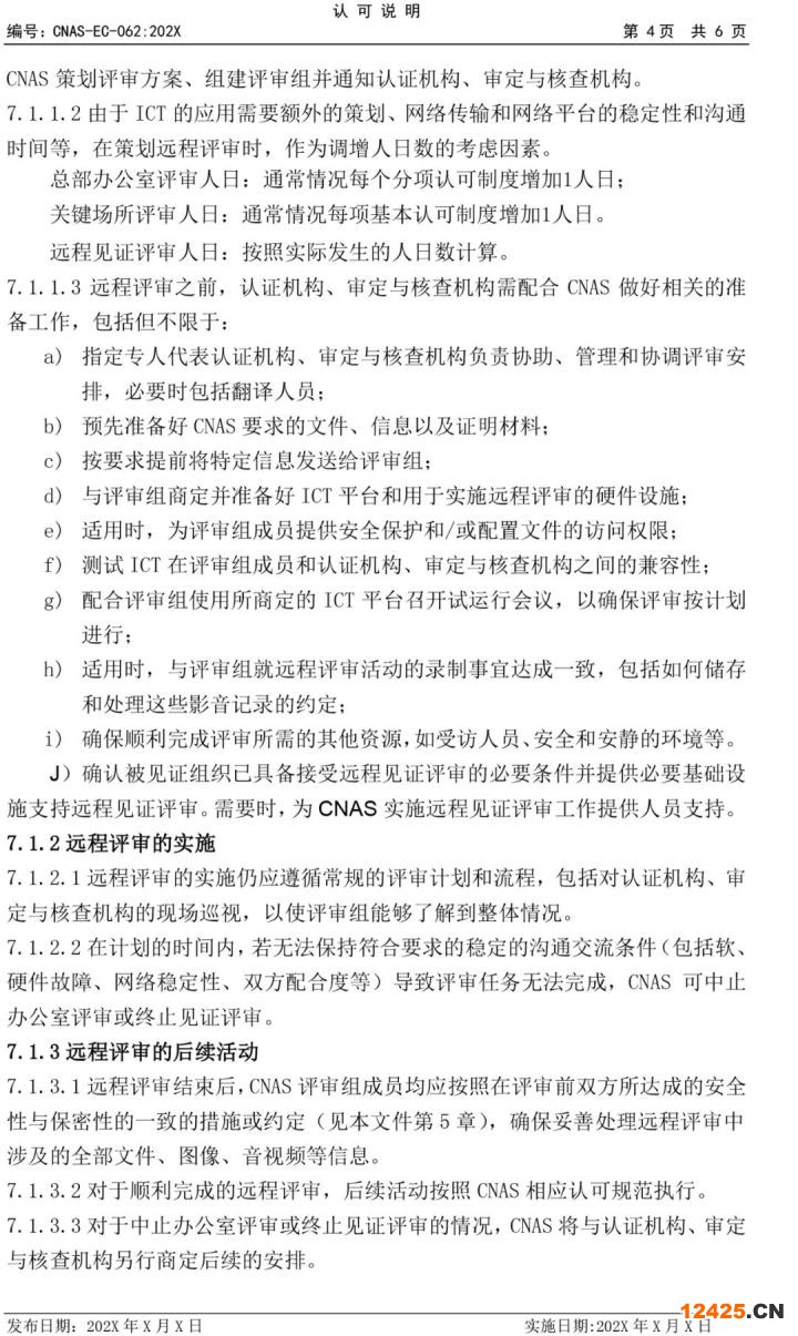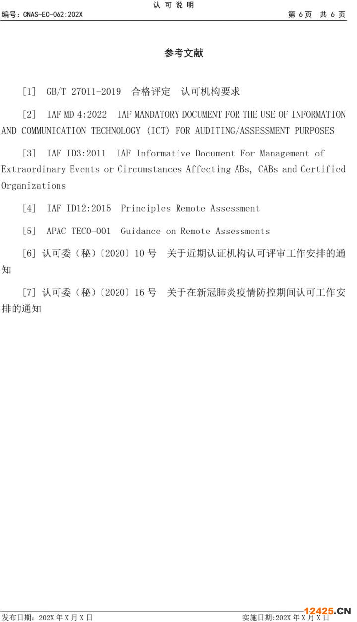 CNAS-EC-062:202X《關(guān)于對(duì)認(rèn)證機(jī)構(gòu)、審定與核查機(jī)構(gòu)實(shí)施遠(yuǎn)程評(píng)審活動(dòng)的說明》(征求意見稿)