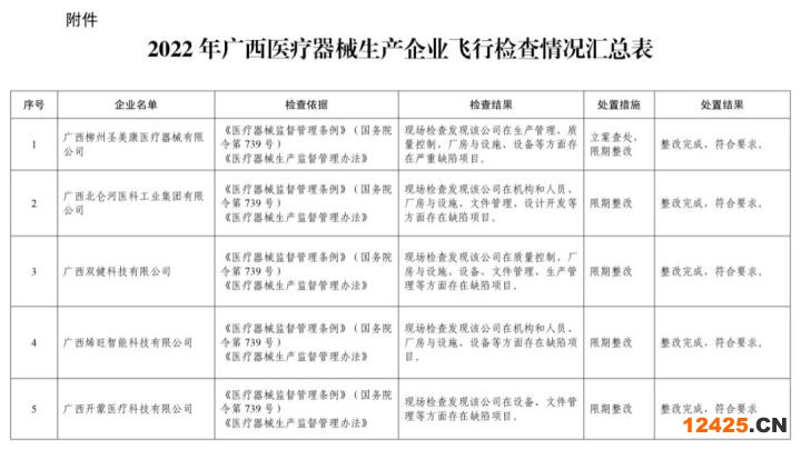 2022年廣西壯族自治區(qū)醫(yī)療器械生產(chǎn)企業(yè)飛行檢查結(jié)果通告