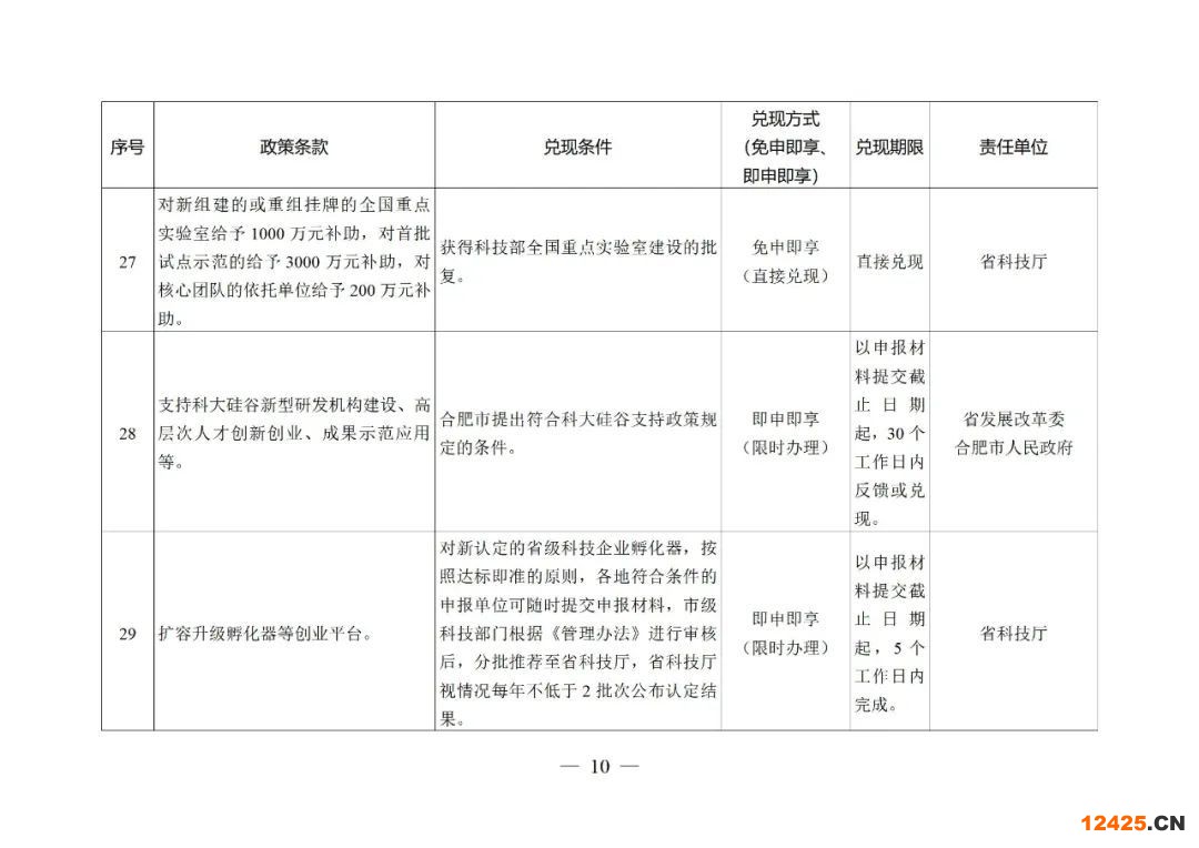 9﹒支持以企業(yè)為主體的創(chuàng)新體系建設(shè)。統(tǒng)籌設(shè)立10億元省科技攻堅(jiān)專項(xiàng)資金,支持十大新興產(chǎn)業(yè)、未來產(chǎn)業(yè)培育等重大技術(shù)需求。(責(zé)任單位:省科技廳)引導(dǎo)金融資源更多投向科技創(chuàng)新重點(diǎn)領(lǐng)域,科技型企業(yè)和戰(zhàn)略性新興產(chǎn)業(yè)貸款增量不低于20%。(責(zé)任單位:安徽銀保監(jiān)局)擴(kuò)容升級孵化器等創(chuàng)業(yè)平臺。(責(zé)任單位:省科技廳)符合條件的創(chuàng)投企業(yè)和天使投資個人對初創(chuàng)科技型企業(yè)投資的,按投資額70%抵扣應(yīng)納稅所得額。(責(zé)任單位:省稅務(wù)局)