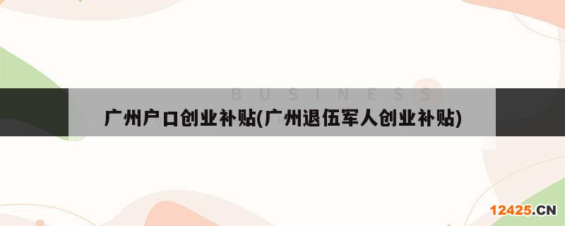 廣州戶口創(chuàng)業(yè)補貼(廣州退伍軍人創(chuàng)業(yè)補貼)
