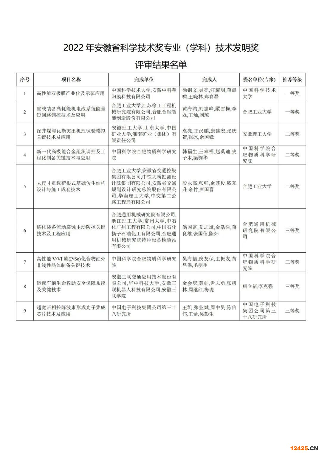 2022年安徽省科學技術(shù)獎專業(yè)(學科)評審結(jié)果公告