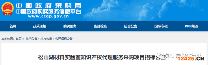 近日,中國政府采購網(wǎng)發(fā)布《松山湖材料實(shí)驗(yàn)室知識產(chǎn)權(quán)代理服務(wù)采購項(xiàng)目招標(biāo)公告》。