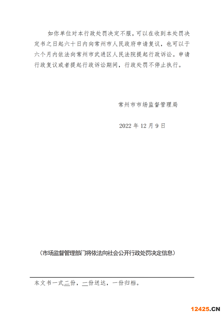處罰單位:常州市市場(chǎng)監(jiān)督管理局