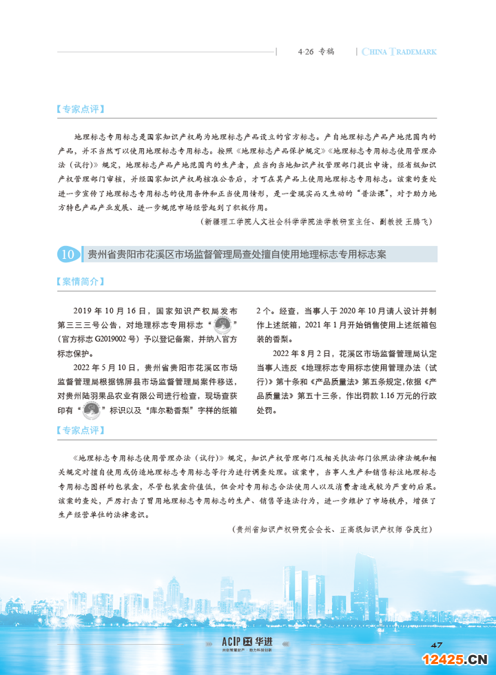 10) 貴州省貴陽市花溪區(qū)市場監(jiān)督管理局查處擅自使用地理標(biāo)志專用標(biāo)志案