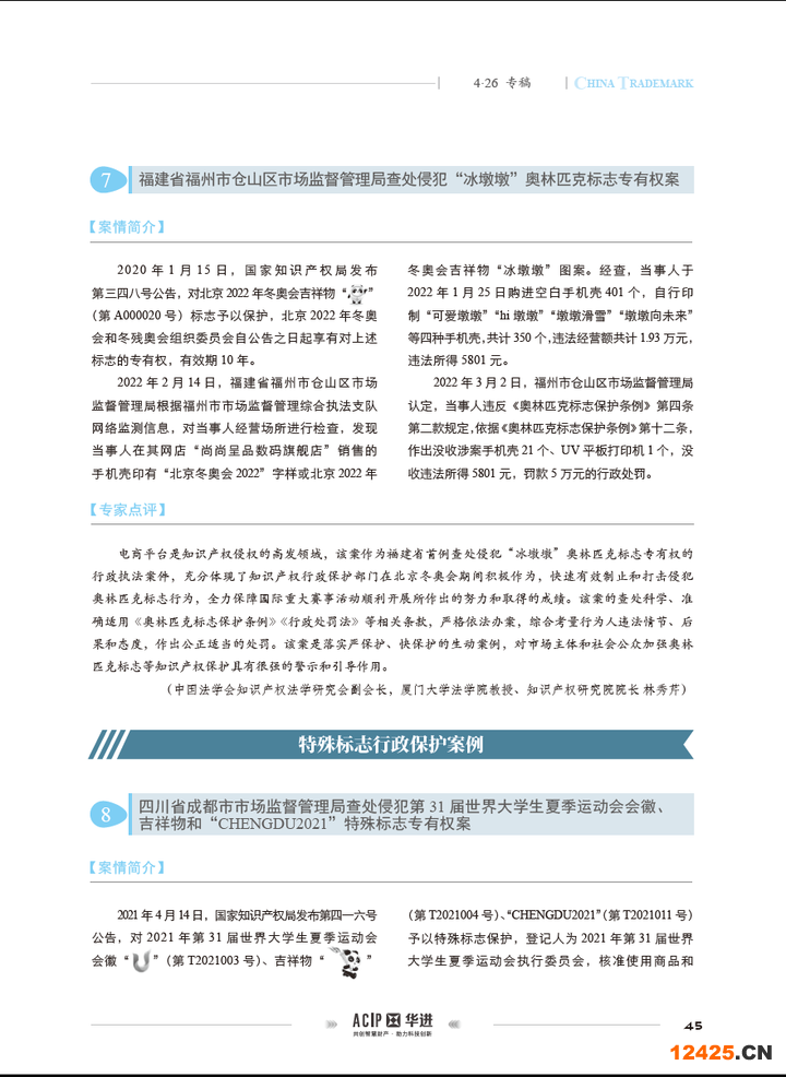 7) 福建省福州市倉山區(qū)市場監(jiān)督管理局查處侵犯“冰墩墩”奧林匹克標(biāo)志專有權(quán)案