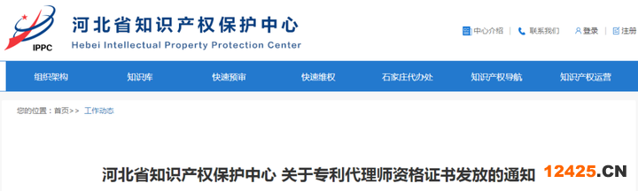河北省知識(shí)產(chǎn)權(quán)保護(hù)中心 關(guān)于專利代理師資格證書發(fā)放的通知