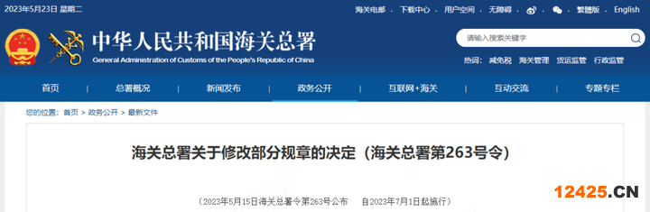 (2023年5月15日海關(guān)總署令第263號公布  自2023年7月1日起施行)