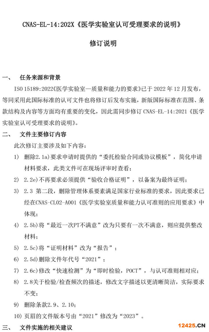 CNAS-EL-14:202X《醫(yī)學(xué)實(shí)驗(yàn)室認(rèn)可受理要求的說(shuō)明》(征求意見(jiàn)稿)