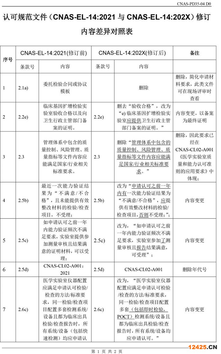 附件2:CNAS-EL-14《醫(yī)學(xué)實(shí)驗(yàn)室認(rèn)可受理要求的說(shuō)明》修訂說(shuō)明
