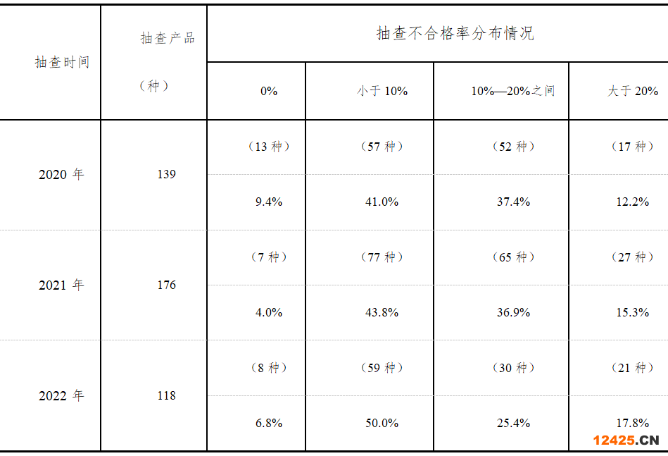 表1 近三年國家監(jiān)督抽查不合格率分布情況表