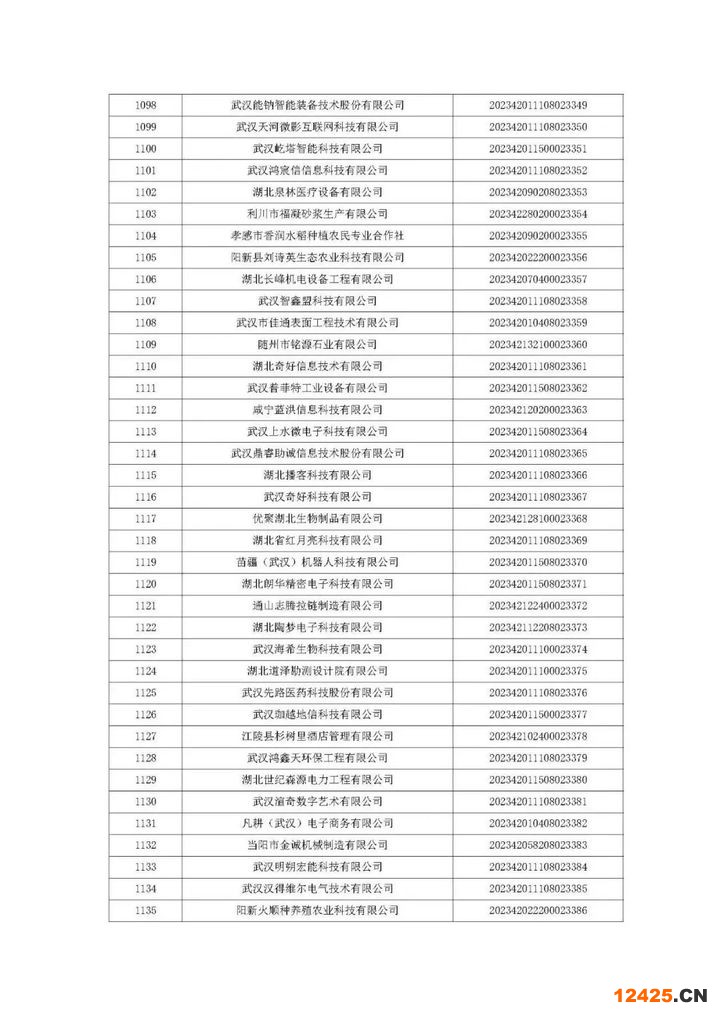 湖北省2023年第6批入庫科技型中小企業(yè)名單公告