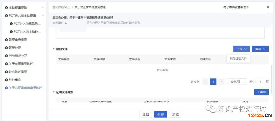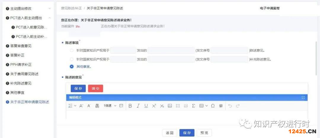 (意見陳述書(關(guān)于非正常申請)在專利業(yè)務(wù)辦理系統(tǒng)中的操作步驟,知識產(chǎn)權(quán)進行公眾號附在文章尾部)