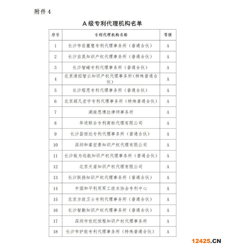 4.A級(jí)專利代理機(jī)構(gòu)名單