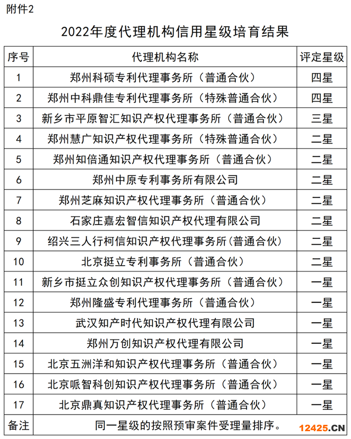 關(guān)于公布2022年度申請主體和代理機構(gòu)信用星級培育結(jié)果的通知