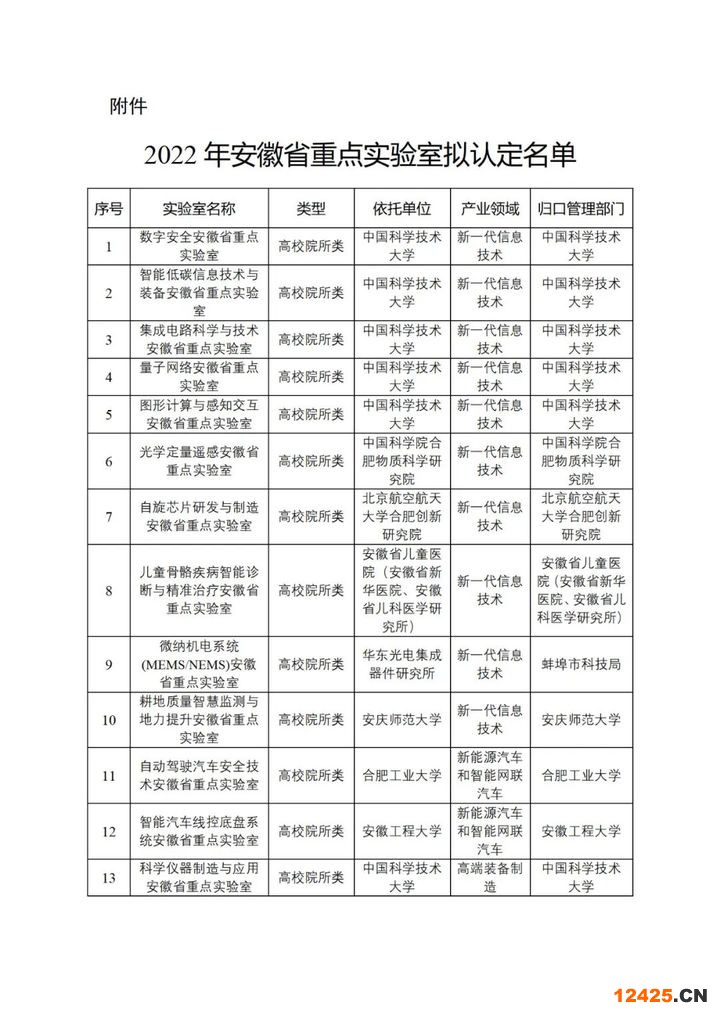 關(guān)于安徽省重點(diǎn)實(shí)驗(yàn)室(高校院所類、企業(yè)類)擬認(rèn)定名單的公示